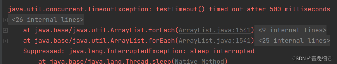 @Timeout注解表示测试方法运行如果超过了指定时间将会返回错误: